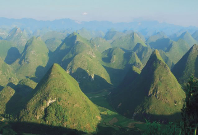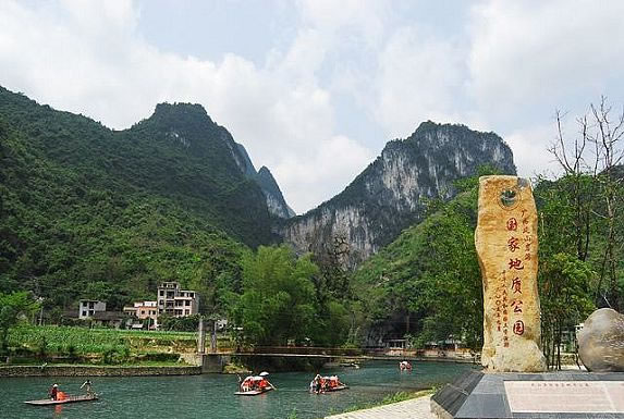 廣西樂業(yè)-鳳山世界地質(zhì)公園,位于廣西西北部云貴高原向廣西盆地過渡的斜坡地帶,由百色市樂業(yè)大石圍天坑群國家地質(zhì)公園和鳳山巖溶國家地質(zhì)公園組成,總面積930平方千米。現(xiàn)已發(fā)現(xiàn)大小天坑30個(gè),是世界上最大的天坑群之一。地質(zhì)公園區(qū)中鳳山三門海景區(qū)擁有高穴馬王洞和水上天坑等地質(zhì)遺跡。天坑群中以大石圍天坑規(guī)模最大,深度和容積居世界第二;坑底森林面積10.5 萬平方米。