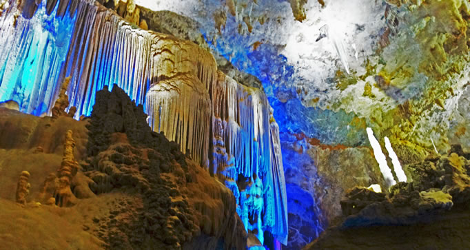 水晶宮位于縣城西北的那社鄉(xiāng)大洛村牛洞屯,距縣城約等43千米,交通便利。水晶宮發(fā)育在峰叢洼地谷地巖溶地貌區(qū),地形起伏大,洞口位于巖溶峰簇的山坡上,高出現(xiàn)代侵蝕面約150米。 水晶宮以潔白純凈、密集分布的石毛發(fā)、卷曲石、石花等景觀為顯著特色,珍惜景觀。洞內(nèi)空氣負氧離子含量很高,達到每立方厘米36000-70000個,為洞外的5-10倍。 水晶宮為廊道狀的中型洞穴,洞穴基本上順巖層層面面發(fā)育,除數(shù)處大廳外,總體上洞道高低起伏不大。據(jù)初步調查,水晶宮的長度總長度1000多米,寬8至50米,高10至80米。洞底局部有軟式和細沙土沉積物。水晶宮內(nèi)的鐘乳石類有重力水趁機累的鵝管、鐘乳石、石筍、石柱、石帶、石旗和各類石幔、石瀑布、石盾等;非重力水晶沉積類的石毛發(fā)、卷曲石、石花等數(shù)十種,形態(tài)多彩多姿,雪白純凈,玲瓏剔透,集天下藝術珍品于一洞,且正在生長之中,極具觀賞價值和科學探究價值。