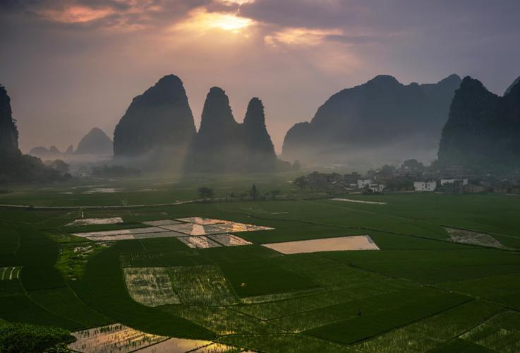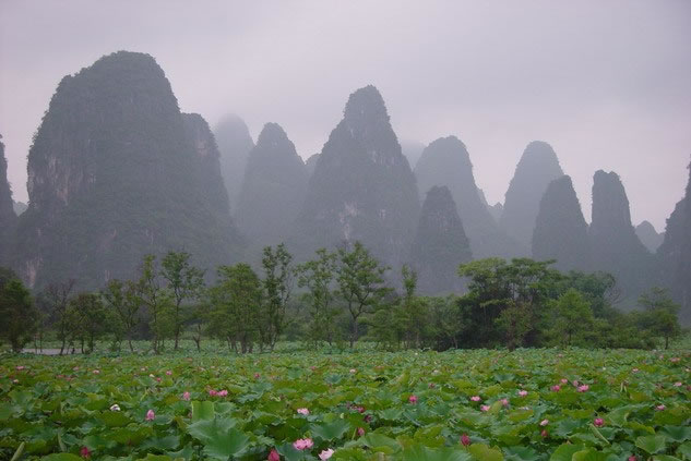 十里畫廊景區(qū)位于縣城西北18千米,國道323線及桂梧高速公路旁,以公安鎮(zhèn)荷塘村為中心,面積約36平方千米。景觀有荷塘群峰、雙元群峰、公婆山、陽元石(朝天蠟燭)、觀音山、寶塔山等。景區(qū)延綿十數(shù)里,風景如畫,因而取名為十里畫廊。 廣西賀州市鐘山縣的“公婆山”位于十里畫廊景區(qū)內(nèi),屬喀斯特巖溶地貌峰林平原區(qū)域。“公婆山”是一座天然形成的“人”字形小石山,此山高約30余米、底寬10多米,呈三角形尖頂狀,極像一男一女面對面站立相擁在一起。當?shù)亓鱾髦粋小伙子金水與仙女巧蘭千古不朽的愛情故事,公婆山就是他們的化身。