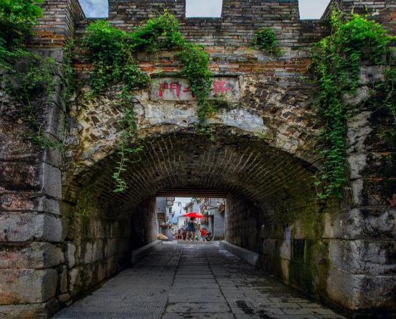古明城是廣西保留較為完整的古縣城遺址之一。該城建于明洪武二十九年(1396年)。城以“十”字架對(duì)稱,街道皆由鵝卵石鋪成,鑲嵌有象征錢財(cái)、富貴的金錢圖案,象征幸福、光明的太陽圖案。 特別是近年來改造后的富川縣城,主街道立面突出瑤族民居“飛檐翹角馬頭墻、玉題干欄萬字窗、素瓦灰墻斜山頂、龍頭鳳尾伴太陽”的建筑風(fēng)格,兩岸風(fēng)情,特色彰顯;一城燈火,美輪美奐。 更難能可貴的是,富川的縣城建設(shè)一直不搞舊城改造,而是另辟新區(qū)。如今的富川縣城,有保留完好的唐宋元明清古風(fēng)的富陽舊城(明代古城);有民國(guó)時(shí)期的縣城中心新永街,騎樓風(fēng)格凸顯;有新中國(guó)成立后改革開放前的縣城政治文化中心新建路和鳳凰路;有改革開放后的都市風(fēng)貌城東新區(qū)。各個(gè)歷史時(shí)期的縣城風(fēng)貌并存,交相輝映,書寫了一部中國(guó)縣城的千年發(fā)展史。無形中成就了一座中國(guó)縣城發(fā)展歷史的露天博物館。