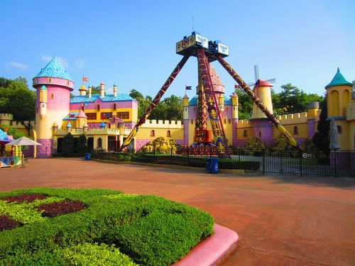 夢幻世界區(qū)是以西洋童話中的夢幻仙境為主題。這里的建筑多呈不規(guī)則形狀,將一些娛樂、服務(wù)設(shè)施裝飾成大樹、蘑菇等奇特造型。該區(qū)主要的游樂設(shè)施有: