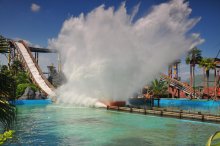急流泛舟:急流泛舟是模擬美國科羅拉多大峽谷宏偉壯麗的造型修建而成,當(dāng)您乘坐皮筏船深入科羅拉多河谷挑戰(zhàn)急流,穿過瀑布,沉醉于大峽谷壯麗的景色時(shí),印第安人突然來襲,緊接著是一個(gè)您絕對逃不過的陷阱,三個(gè)大酒桶從山頂上倒下幾百加侖的大水,越過大橋后是連番重炮攻擊,炮聲四起,水花四濺,這時(shí)讓您只想趕快逃離,不過西部的勇士總是還會(huì)再來挑戰(zhàn)。泛舟全長約400米,運(yùn)用高科技設(shè)備控制水流流速,制造急流旋渦。船速達(dá)3-4米/秒,這一驚險(xiǎn)的歷程只要3分鐘,每艘船可乘坐8名勇士。