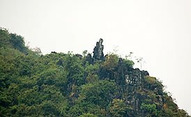 望夫石位于漓江江西岸,斗米灘前,距桂林約37公里。山頂有仙人石,如一穿古裝的人向北而望;山腰有一石,如身背嬰兒凝望遠(yuǎn)方丈夫的婦女,因名望夫山,亦名望夫石。