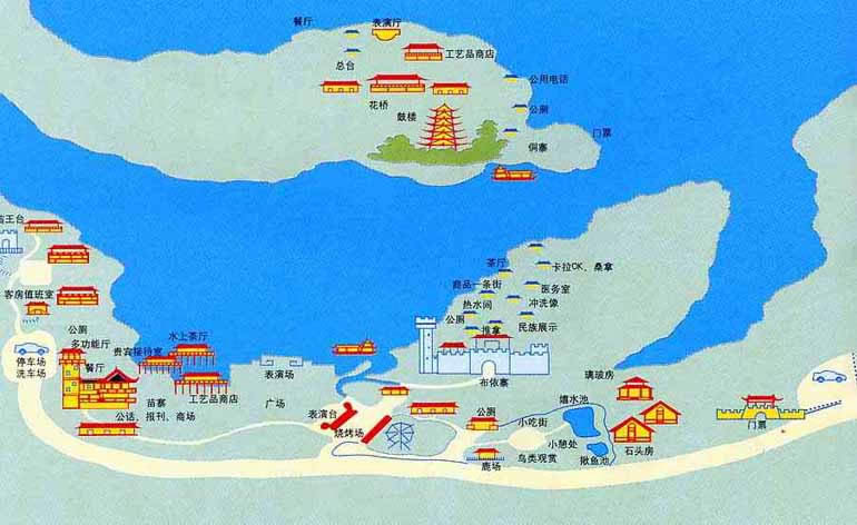 民族村不僅薈萃了大西南16個民族的原始風俗表演,而且還從全國各地引進雜技馬戲、珍奇猛獸馴化表演等等。每周還舉辦一次“土風狂歡夜”,各民族的歌舞在這里各領風騷,令游人大開眼界。\