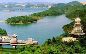 紅楓湖以熔巖地貌和湖光山色為特色,既有桂林山水的碧麗俊秀,又有“高原島國”的千姿百韻。湖區(qū)分北湖、中湖、南湖和后湖。四湖風韻各異:北湖碧波萬頃,中湖水狹山奇,南湖山重水復,后湖群峰環(huán)水。南湖將軍灣溶洞群中的將軍洞,長達600米,有3個洞中湖,白而透明的各種鐘乳石倒映水面,宛如水晶宮殿,形成了山里有湖,湖里有島,島上藏洞,洞中有湖,洞湖相通,融山、林、水、洞諸景一體,具有“闊、秀、奇、爽”四大奇特景色。泛舟漫游穿梭于幽谷、石林和水灣之間,令人如入仙宮。