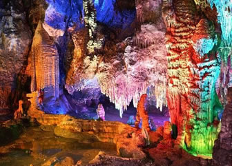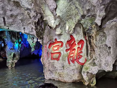 龍宮水溶洞長達(dá)15公里,為國內(nèi)之冠。景區(qū)對外開放了二段,長1260米,洞內(nèi)鐘乳千姿百態(tài),與北方溶洞相比更顯細(xì)致與精巧,與南方溶洞相比更顯神秘與奇特,其洞廳構(gòu)造宛如神話中的龍王宮殿!暗叵吕旖、天上石林”的溶洞風(fēng)景價值,是目前國內(nèi)已發(fā)現(xiàn)的其它同類型景區(qū)中無以比擬的,大詩人艾青稱“大自然的大奇跡”,國畫大師劉海粟譽(yù)“天下奇觀”,全國溶洞專家感嘆“覽龍宮知天下水洞,蕩輕舟臨人間仙境”!吧讲辉诟,有仙則名,水不在深,有龍則靈”,龍宮就是這樣的人間天堂。