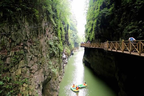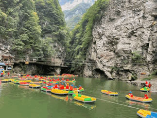 從龍門橋到喇 叭口,水流舒緩;從喇叭口到鑼鼓村則激流險灘多,頗具刺激性,水也更清澈。到了鑼鼓沖,又有竹筏、獨木舟和摩托艇供你選擇作水上游。