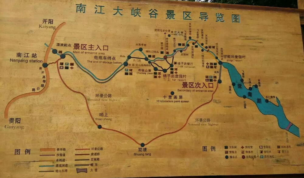 沿貴遵高速公路——貴陽繞城高速公路(新添寨出口下)——貴開二級高速公路直達(dá)景區(qū);沿貴遵高速公路到達(dá)久長——開陽——南江(大約100公里);通過遵義——南白——尚稽——楠木渡(下馬場)——開陽——南江線路到達(dá)本景區(qū)。 |
