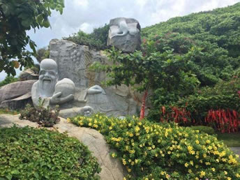 南山是座吉祥的山,在老百姓的心目中南山與長壽密切相關(guān),是真正意義上的壽山。中國稱作南山的地方很多,如廣東的潮州、福建的莆田、四川的大足、陜西的西安等地都有南山。最著名的南山當(dāng)數(shù)青海東都境內(nèi)的南山,見于《中國名山大川辭典》(1992年,山東教育出版社)。但大小洞天所在的南山卻非常獨特;其一,這是中國最南部的山,是名副其實,名正言順的南山;其二,南山大小洞天被視為南海的”洞天福地”!倍刺旄5亍笔堑兰译[居和修煉長生不老的地方,也是神仙真人之治所,是理想中長壽之地;其三,中國第三次、第四次人中普查結(jié)果顯示:海南的人口平均壽命最高,而三亞市的人口平均壽命為海南之首,南山又為三亞之最,現(xiàn)存86歲以上的老人達(dá)幾百人之多,可見這里是實實在在的福澤之地,長壽之鄉(xiāng);其四,南山大小洞天一帶集中分布有能成活數(shù)千年的長壽樹--被美喻為”南山不老松”的龍血樹。龍血樹屬龍舌蘭科常綠植物。白堊紀(jì)恐龍時代就已出現(xiàn),被稱為植物中的活化石,世界科教文組織列為保護(hù)樹種。中國亦定其為珍稀瀕危植物,屬國家二級重點保護(hù)樹種,主要分布于熱帶、亞熱帶軒區(qū)。現(xiàn)今,此樹種已瀕臨滅跡,但在三亞南山一帶卻生長著三萬株之多,主要集中于南山大小洞天旅游區(qū),樹齡逾千年的有兩千多株,最長的有六千年以上。福澤之地,養(yǎng)育千年古樹;神足之山,氤氖萬古精靈。人們有足夠的理由相信,南山是長壽之鄉(xiāng),”壽比南山”在這里當(dāng)之無愧。”壽比南山不老松”正是這一景區(qū)的真實寫照。