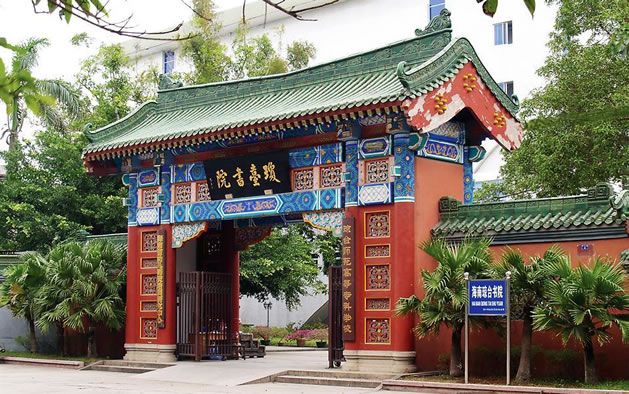 瓊臺(tái)書院位于府城中山路8號(hào),相傳是后人為紀(jì)念海南第一才子、明朝大學(xué)士丘濬而建。始建于清康熙四十四年(1705年)據(jù)傳由于丘濬號(hào)瓊臺(tái),人稱瓊臺(tái)先生,故書院由此得名。 書院現(xiàn)今是瓊臺(tái)師范學(xué)院的校址,其主樓奎星樓高二層,綠瓦、紅廊、白墻,是一座具有民族特色的磚木結(jié)構(gòu)建筑,至今保存完好。樓內(nèi)雕梁畫棟,異常別致;樓前綠樹成蔭,環(huán)境秀麗雅靜。著名的粵劇、瓊劇《搜書院》的故事就發(fā)生在此,瓊臺(tái)書院隨著《搜書院》而蜚聲海內(nèi)外。