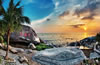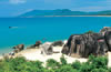 天涯海角位于天涯區(qū)的馬嶺山腳下,距三亞市區(qū)約26千米。其前海后山,風(fēng)景獨(dú)特。步入游覽區(qū),沙灘上那一對拔地而起的高10多米,長60多米的青灰色巨石赫然入目。兩石分別刻有“天涯”和“海角”字樣,意為天之邊緣,海之盡頭!疤煅暮=恰本褪怯纱说妹摹