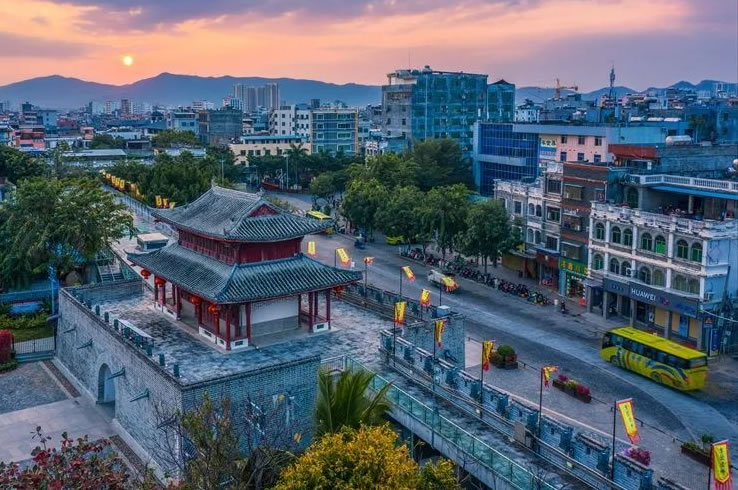 崖州古城,即現(xiàn)海南省三亞市崖城鎮(zhèn),位于三亞市西40多公里處,自南北朝起建制崖州,宋朝以來歷代的州、郡、縣治均設在這里。今天的崖城,以其悠久的歷史和繁多的名勝古跡而成為海南旅游勝地。 海南建省辦大特區(qū)后,崖州城的城門已修繕一新,顯得雄偉壯觀,中外游客川流不息。在崖城還有聞名海內外的風景區(qū)大小洞天,其形如巨鰲,枕海壁立,峰巒竟秀,林木重疊,山奇石怪,千姿百態(tài),綠榕垂蔭,紅豆如星,泉清似醴。