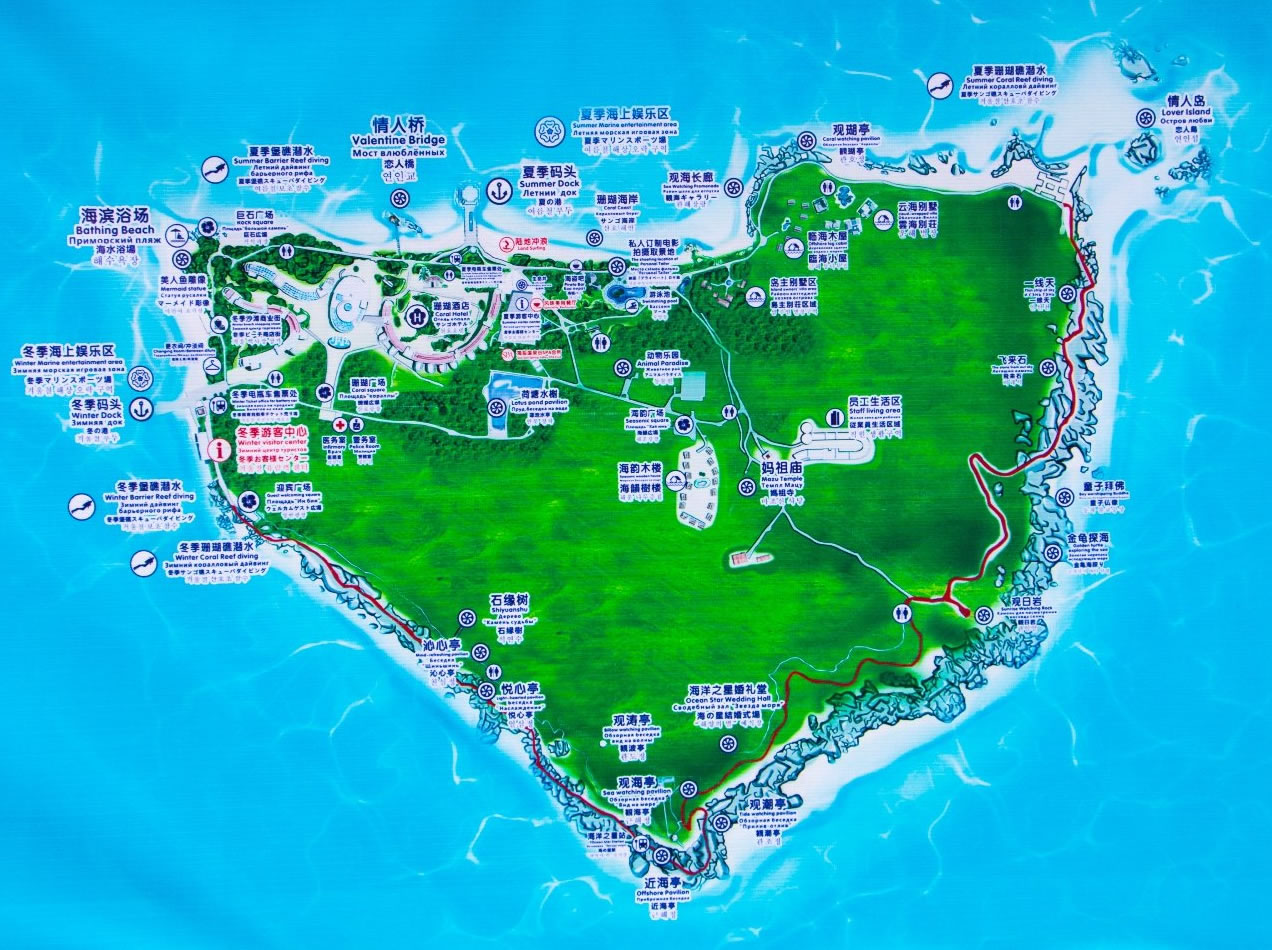 距三亞市30公里,鳳凰機(jī)場(chǎng)38公里,緊靠?谥寥齺喌母咚俟,位置優(yōu)越,交通便利。蜈支洲島是海南島周?chē)鸀閿?shù)不多的有淡水資源和豐富植被的小島,有二千多種植物,種類(lèi)繁多。