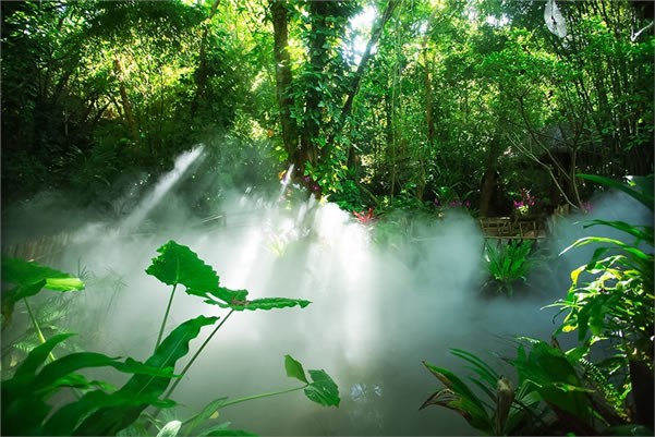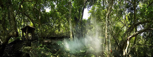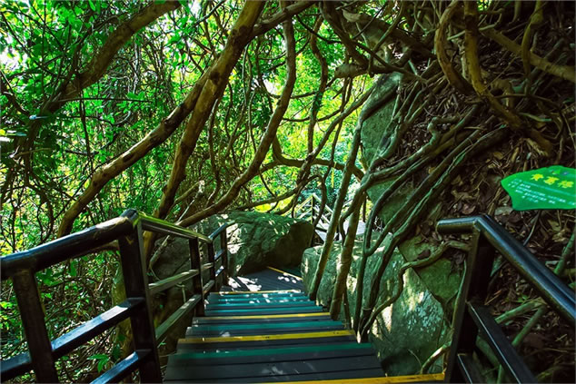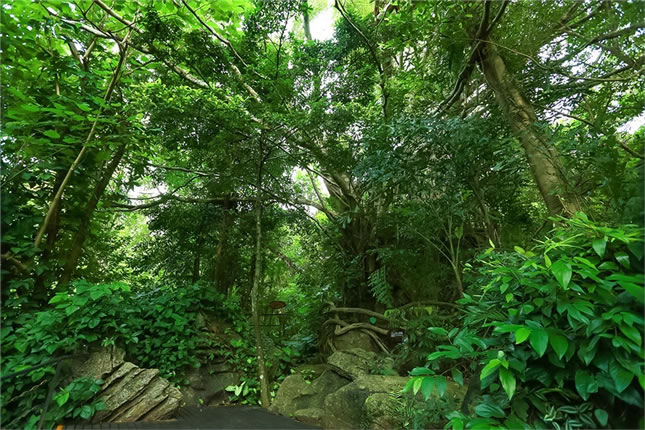 雨林谷以展現(xiàn)原生態(tài)的熱帶雨林景觀為核心,匯集參天巨榕、百年古藤、黑桫欏、仙草靈芝、見血封喉、野生桄榔以及“高板根”“根抱石”“空中花園”“老莖結(jié)果”“植物絞殺”“藤本攀附”熱帶雨林的六大奇觀等。雨林谷是“天然氧吧”和負(fù)氧離子發(fā)生器,此地年平均溫度24度。雨林谷游覽通道由木棧道、野趣石階、吊橋組成,長達3.5千米,分為大、中、小三個環(huán)行線路。