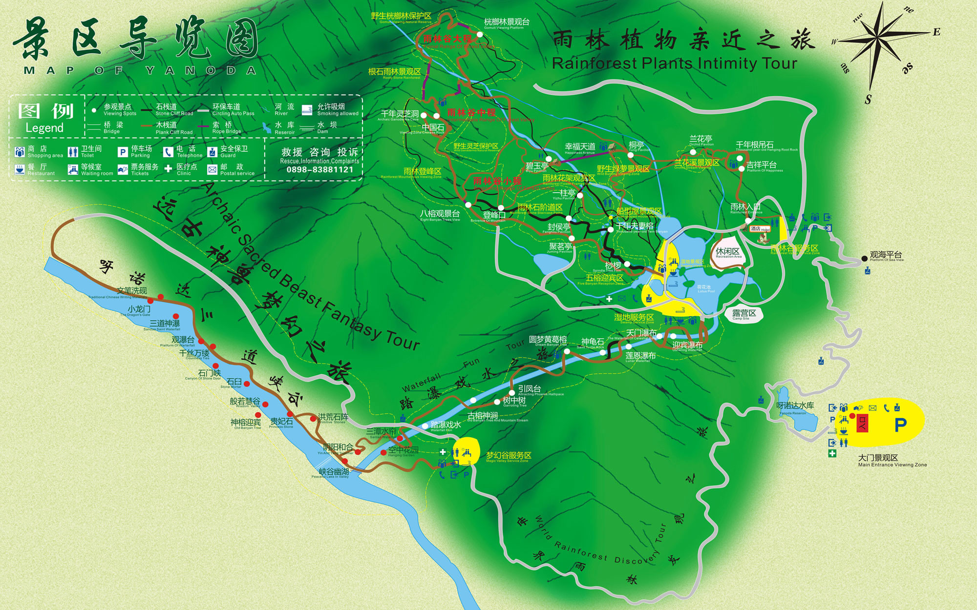 海南呀諾達雨林文化旅游區(qū)集熱帶雨林、峽谷奇觀、流泉疊瀑、黎峒風(fēng)情、熱帶瓜果、南藥、溫泉多種旅游資源于一身。主要有生肖廣場、雨林谷、夢幻谷、三道谷、濕地等多個景觀區(qū),有呀諾達雨林、藥師峽谷、生肖廣場、啪魯?shù)弦巴馔赜?xùn)營、呀呀呀熱帶果鄉(xiāng)、達達瑟黎苗博覽以及酒店、度假村等項目,是海南島五大熱帶雨林的濃縮,是具觀賞價值的熱帶雨林資源博覽館。