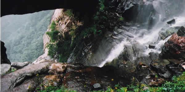 天生橋瀑布群,在阜平縣城西南30多公里處百草坨東側(cè),分布著九個(gè)大瀑布,一座天然形成的橋梁,被專(zhuān)家鑒定為中國(guó)北方最大的瀑布群和由變質(zhì)巖形成的中國(guó)最大的天生橋。瀑布群集中在與百草坨相連的一條溝谷中,最高的瑤臺(tái)瀑布落差112.5米。天生橋是由瀑流沿山谷裂隙沖蝕、崩塌形成的,長(zhǎng)27米,寬13米,高13米,與流量最大、落差最高的瑤臺(tái)山銀河瀑布組合,形成了一個(gè)天然地質(zhì)奇觀(guān)。盛水期飛流直下,如天馬奔騰,驚天動(dòng)地;枯水期清流潺潺,聲韻清脆,宛如輕音樂(lè)協(xié)奏曲。冬季瀑布水凝,生成千千萬(wàn)萬(wàn)、大大小小、姿態(tài)各異的冰柱,猶如鬼斧神工造化的玉雕。