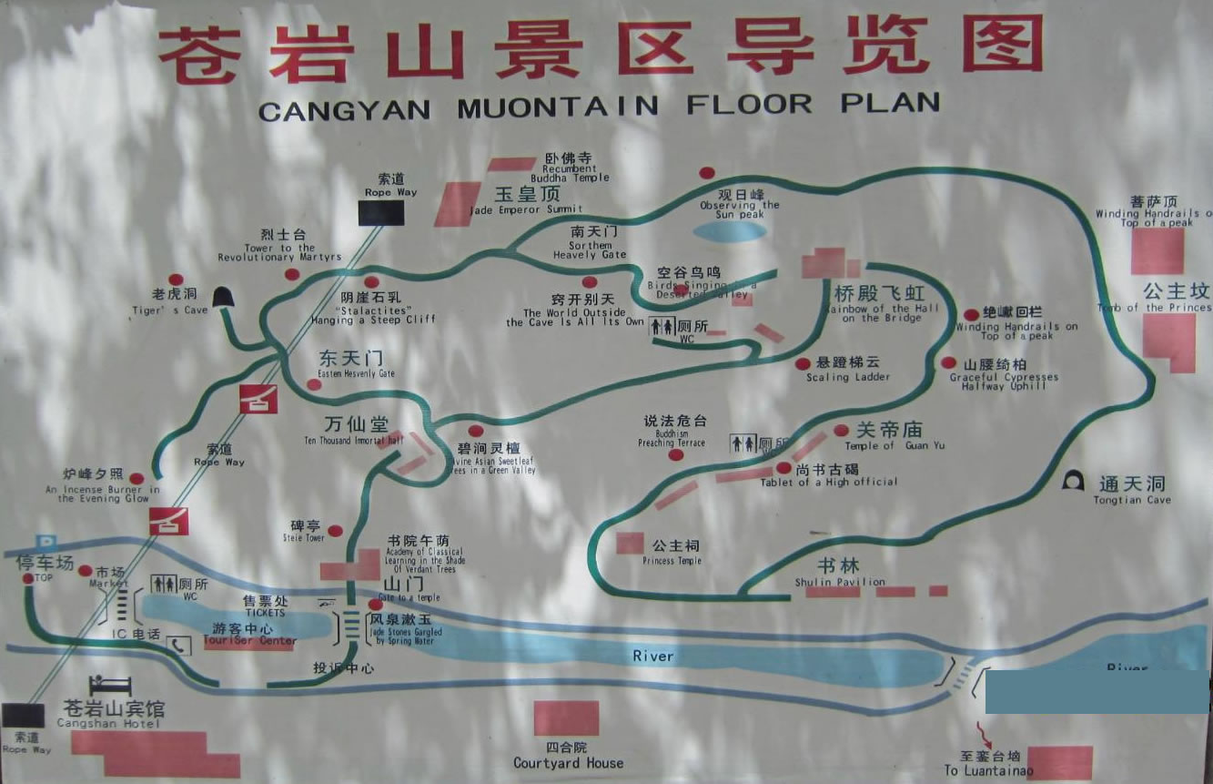 蒼巖山有著名的十六景,景景入勝,步步宜人。為:巖關(guān)鎖翠、風(fēng)泉漱玉、書院午蔭、碧澗靈檀、懸登梯云、橋殿飛虹、峭壁嵌珠、絕獻(xiàn)回欄、空谷鳥鳴、懸崖奇柏、說法危臺(tái)、虛閣藏幽、尚書古碣、陰崖石乳、竅開別天、爐峰夕照。