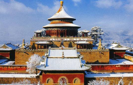 避暑山莊周圍的喇嘛教寺廟群是依照西藏、新疆喇嘛教寺廟的形式修建的,以供邊疆少數(shù)民族的貴族朝覲皇帝時禮佛之用。共12座,其中的8座由清政府直接管理,故被稱為“外八廟” 。廟宇按照建筑風格分為藏式、漢式和漢藏結(jié)合式三種,它們?nèi)诤狭藵h、藏等民族建筑藝的精華,氣勢宏偉,極具皇家風范。這些風格各異的寺廟是當時清政府利用宗教作為籠絡(luò)手段來團結(jié)蒙古、新疆、西藏等地區(qū)少數(shù)民族而修建的。它們多利用向陽山坡層層修建,主要殿堂聳立突出、雄偉壯觀。