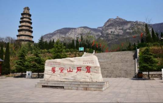 響堂山石窟,又稱(chēng)響堂寺石窟,位于河北省邯鄲市峰峰礦區(qū)。最初開(kāi)鑿于北齊時(shí)代(公元550—577年)。以后,隋、唐、宋、元、明各代均有增鑿。尚有石窟16座,4000多尊雕像,石窟均營(yíng)鑿在山清水秀、環(huán)境優(yōu)美的鼓山最優(yōu)質(zhì)的石巖中。石窟幽深,人們?cè)谏蕉蠢飺粽扑π,都能發(fā)出洪亮的回聲,故名“響堂”。