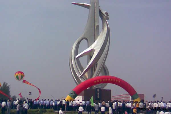 縣標,總高四十五米六,主體呈帆狀,寓揚帆遠航之意。長帆直沖云霄,寓魏徵之剛;浪花環(huán)繞飛舞,寓衛(wèi)水之柔。又似龍鳳盤旋,寓陶山人秉承先賢,憑蛟龍騰躍之威,借金鳳鵬飛之勢,宏圖共起,更鑄輝煌!