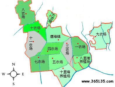 唐?h轄1個鎮(zhèn)、11個農(nóng)場、2個養(yǎng)殖場: