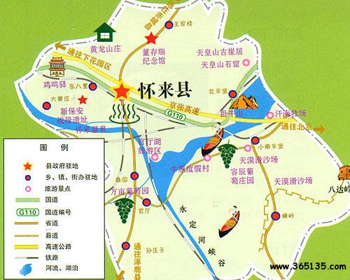 生態(tài)環(huán)境良好:該縣地處北京上風(fēng)上水,空氣清新,山清水秀,景色怡人,具有良好的生態(tài)環(huán)境。全縣林地面積129.5萬多畝,森林覆蓋率達(dá)到30.4%。位于懷來盆地中央的官廳水庫猶如一顆璀璨的明珠鑲嵌其中,環(huán)水庫周圍擁有梨園、海棠園、葡萄園等眾多花果園,臥牛山旅游度假、太師莊休閑度假、永定河峽谷漂流、天漠滑沙旅游多個(gè)各具特色的旅游景點(diǎn)、景區(qū)交叉點(diǎn)綴。集葡萄種植、加工、旅游于一體的容辰葡萄莊園,被國(guó)家批準(zhǔn)為首批農(nóng)業(yè)旅游示范點(diǎn)。天皇山、白龍?zhí)兜茸匀伙L(fēng)景區(qū),植被茂盛,風(fēng)景秀美。黃龍山莊花香幽遠(yuǎn),生態(tài)觀光獨(dú)具特色。