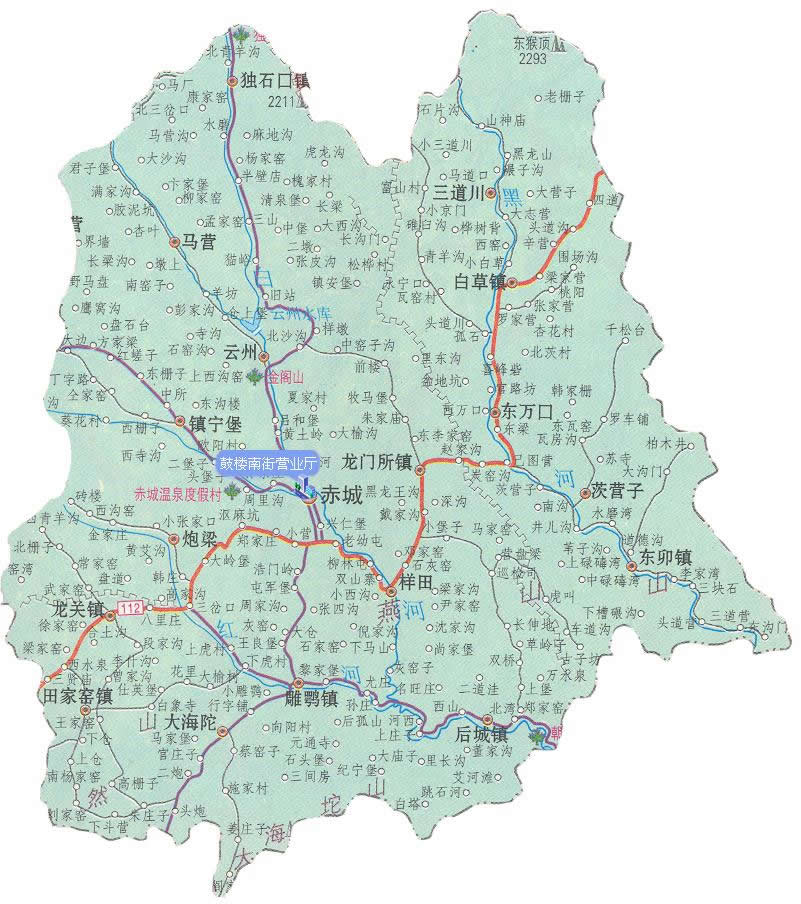 鎮(zhèn):赤城鎮(zhèn)、田家窯鎮(zhèn)、龍關(guān)鎮(zhèn)、雕鄂鎮(zhèn)、獨石口鎮(zhèn)、白草鎮(zhèn)、龍門所鎮(zhèn)、后城鎮(zhèn)、東卯鎮(zhèn)