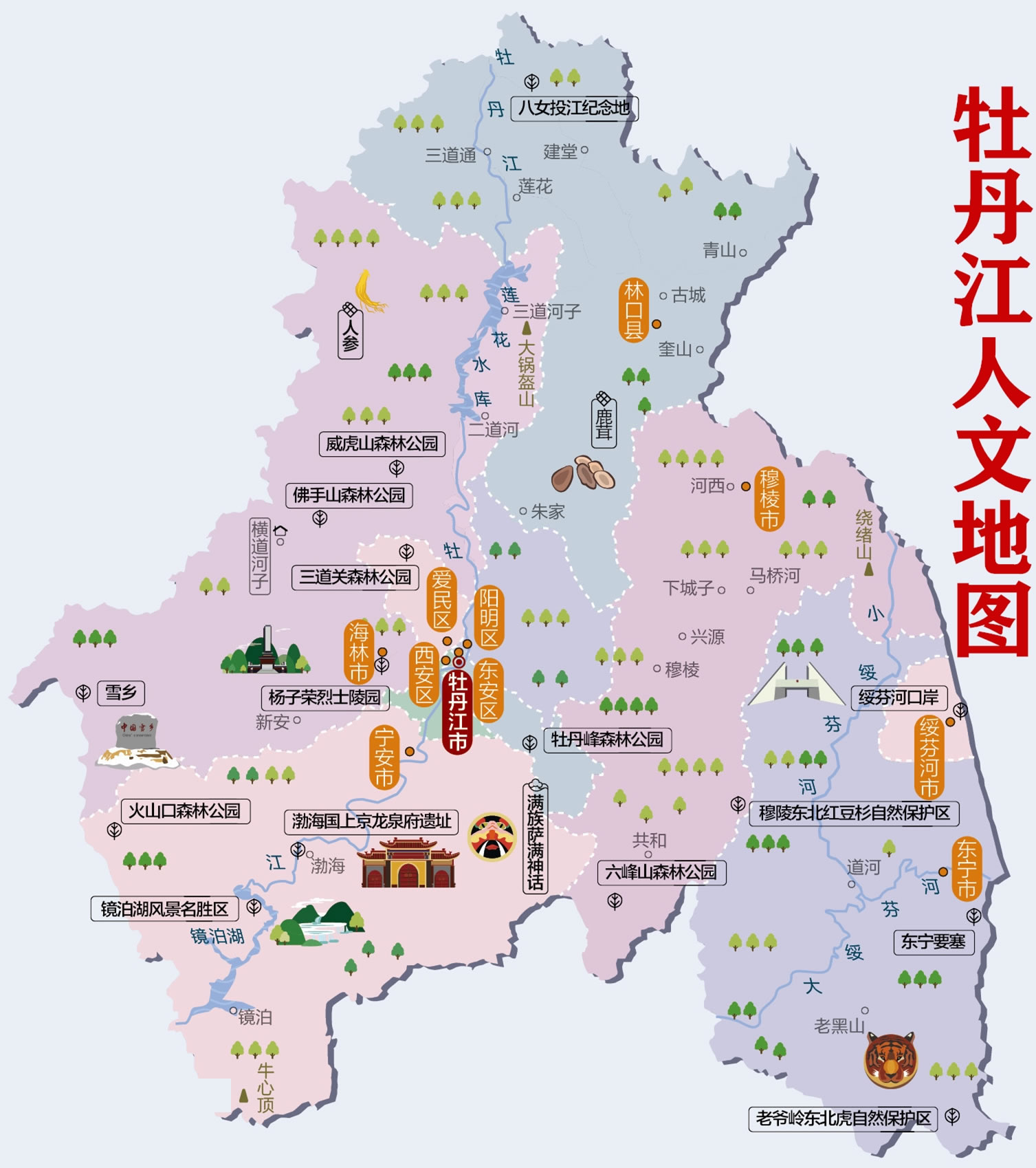 牡丹江市位于黑龍江省東南部,素有“塞北江南”之稱(chēng)。風(fēng)光旖旎,景色天成。 世界第二大火山熔巖堰塞湖、世界地質(zhì)公園——鏡泊湖風(fēng)景秀麗。國(guó)家級(jí)森林公園地下森林是世界著名的“火山口”原始森林。中國(guó)北方地區(qū)最大的人工湖——蓮花湖山清水秀,森林虎園驚心動(dòng)魄,冰雪旅游獨(dú)具特色,跨國(guó)旅游風(fēng)情迥然……