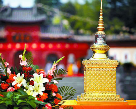 白馬寺現(xiàn)存2顆釋迦牟尼佛骨舍利,分別由泰國和斯里蘭卡贈送。
