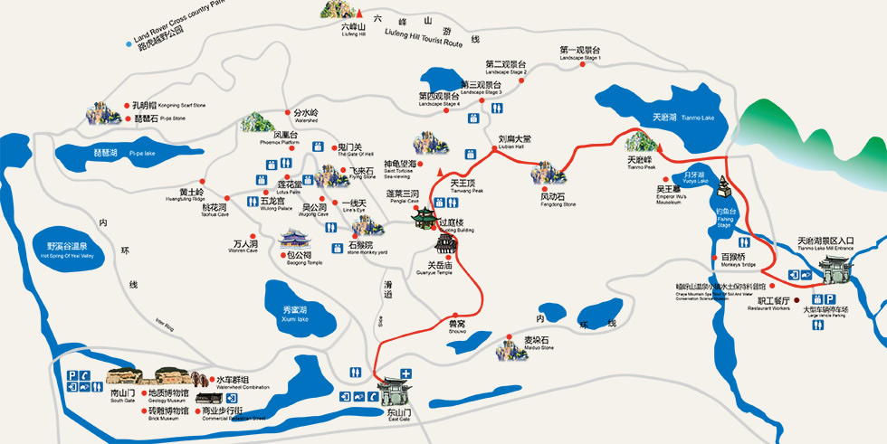 嵖岈山主要由南山門區(qū)、南山、北山、六峰山、天磨湖、琵琶湖六大景區(qū)組成,景區(qū)內(nèi)石、山、水相依,峽、谷、峰相連,南山、北山、六峰山毗鄰,秀蜜湖、琵琶湖、天磨湖散布其中,共有南山門、東山門和北山門3個山門。