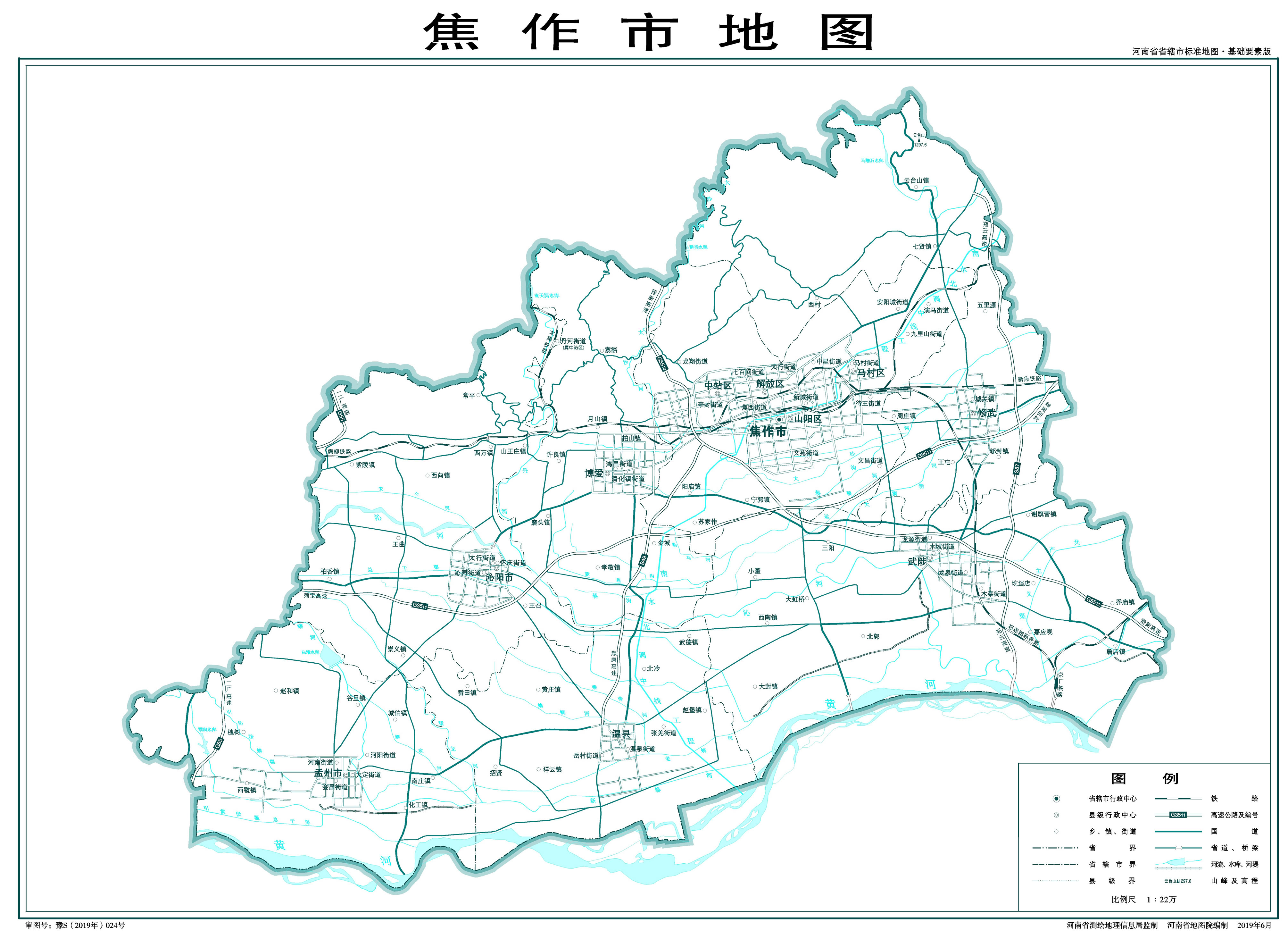 焦作市轄4個市轄區(qū)、4個縣,代管2個縣級市: