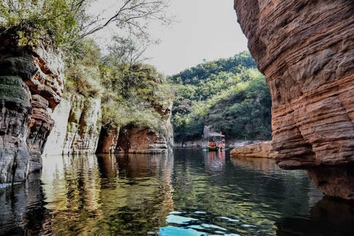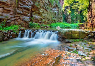 龍?zhí)洞髰{谷景區(qū)是王屋山——黛眉山世界地質公園的核心景區(qū),是一條以典型的紅巖嶂谷群地質地貌景觀為主的峽谷景區(qū)。谷內關峽相望,潭瀑聯(lián)珠,壁立萬仞,峽秀谷幽,經過十二億年的地質沉積和260萬年的水流切割旋蝕所形成的高峽甕谷、山崩地裂奇觀,堪稱世界一絕,人間少有,享有“中國嶂谷第一峽”、“古海洋天然博物館”、“峽谷絕品”和“黃河水畫廊”等美名。