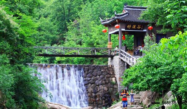 好運谷景區(qū):在魯山縣堯山鎮(zhèn)四道河村,堯山北麓,311國道北一公里,有一條西北——東南走向的山谷。傳說古時有時運不濟的李橋采金釵石斛跌落湖中得寶珠從此時來運轉,得名好運谷。又名李橋溝。該谷兩岸,郁郁叢叢,群峰峙立,竟奇斗峻;斷崖重重,險不可攀;奇石如塑,似人似物;石穴洞府,幽深莫測;原始森林,遮天蔽日;野果累累,芳香誘人;奇花異卉,漫山遍野;金秋紅葉、流丹似火。尤為著名的是谷中成群成串的飛瀑、龍?zhí)都皬V闊的湖面、依山勢高低錯落、飄逸灑脫、布局巧妙、緊湊合理,成為自然山水中的奇葩。好運谷整體長10多公里。而在山谷下部不到2公里的長度內,則集中了10——70米落差的瀑布10多條。飛濂瀑、鳳鳴瀑、飛龍瀑、桂花瀑,飛瀑如簾,卷云噴霧;瀑下有潭,石凹成潭,濂潭、半月潭、神龜潭、九女潭、洗心潭,潭潭相連,玉碧鏡清。潭溪之中,群群游魚追逐嬉戲。河床基巖光滑如龍榻玉鋪,清溪曲折跌宕如笙弦之歌。奇石秀水,天造地設,恰似濃縮了的瀑潭盆景。大小不一的飛瀑龍?zhí),串連一體,猶如一條碩大的金項鏈,鑲嵌在好運谷的玉脛上,發(fā)著燦爛奪目的光。