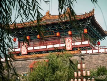 現(xiàn)在復(fù)原的城門高21.6米,面積1553平方米,門洞就高達(dá)8米。城樓上,金碧輝煌的彩繪更顯示出它的輝煌與壯觀,人們稱贊它“勾梁畫棟,氣宇不凡”。在等級森嚴(yán)的封建社會,連建筑也要分三六九等。從上善門的宏偉氣勢,就可以看出它的重要地位。