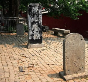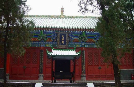 過了山門,便是甬道。甬道兩旁就是蒼松翠柏掩映下的碑林,因碑石如林故稱碑林。這里共有20多通歷代石碑,如“宗道臣歸山紀念碑”、“息息禪師碑”等。在道路東側有一長廊,廊內陳列有從唐代到清代的名碑100多通,有碑廊之稱。錘譜堂就在山門內碑林西側,里面有泥塑和木雕群像。