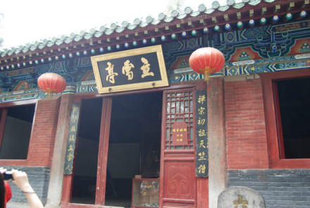 達摩亭,又稱立雪亭,建于明代,1980年重新修繕。相傳這里是二祖慧可侍立在雪地里向達摩祖師斷臂求法的地方。殿內神龕中現供奉達摩祖師的銅坐像,是在明嘉靖十年(1531年)所鑄。兩側分別是二祖慧可、三祖僧燦、四祖道信、五祖弘忍。龕上懸掛的匾額“雪印心珠”四字為清乾隆皇帝御筆親題,字體遒勁,氣勢豪邁。此殿現為寺僧日常做佛事的場所。東配殿位于達摩亭西側,于1983年重建,殿內有“阿彌陀佛”的石像和“達摩面壁影石”。