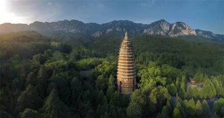 嵩岳寺塔在登封嵩山南麓,是中國現(xiàn)存最古的密檐式磚塔,建于北魏正光四年(523年)。