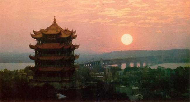 李白寫下的詩(shī)詞與黃鶴樓有關(guān)的不下五首,其中有一首《與史郎中欽聽黃鶴樓上吹笛》:“一為遷客去長(zhǎng)沙,西望長(zhǎng)安不見家。黃鶴樓中吹玉笛,江城五月落梅花。”從此,“江城”便成為武漢的美稱。
