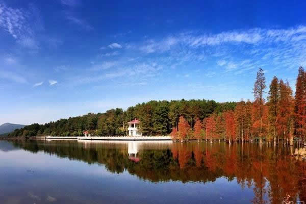 10:10知音谷林蔭小道,光影斑駁,曲徑通幽,桃李爭艷、迎春花黃,爛漫花事,溪流潺潺。瀏撫琴石,子期草廬,試斧石,山人居,聆聽“高山流水遇知音”的唯美故事,感受千年前俞伯牙與鐘子期的真摯友情。登扶云梯,攀江漢平原第一高峰——龍霓山,鎖情臺開天下第一同心鎖。楚望亭遠眺山鄉(xiāng)田園風(fēng)光。森林穿越,過九真關(guān);行琴人谷,詩竹軒看春筍破土,翠竹拔節(jié),氧浴竹海。賞當(dāng)?shù)孛視嫛_^九曲橋,徜徉山水之間。鴛鴦壩下高爾夫球場瀟灑揮桿(自費),體驗貴族運動的高雅情趣。賞連理湖美景,青山秀水,滿山含翠。檫木花開,嫩黃朵朵,猶如繁星點綴在山野之間。
