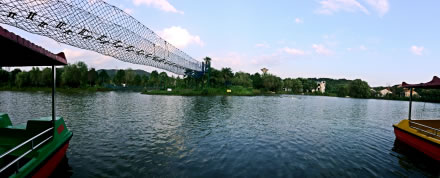連理湖,三面環(huán)山,一面向沖,水碧林翠,鳥語花香,宛若瑤池。現(xiàn)今,白玉欄桿環(huán)湖而圍,天人閣、合一廊、九曲橋、回眸橋等景觀,與湖光山色渾然一體,成為國內(nèi)獨一無二的大型水上浪漫婚典勝地,特制的大彩船、小花船上,可舉辦各式婚典。