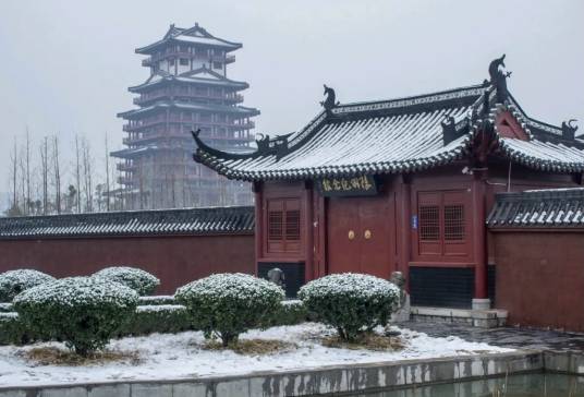 陸羽紀(jì)念館占地面積10000平方米,建筑面積1325平方米,主體建筑由古雁橋、山門、前殿、后殿,回廊及服務(wù)設(shè)施組成,為歇山頂式仿唐建筑風(fēng)格,館額由賀敬之題寫。