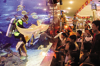 為使都市人品味玩魚(yú)樂(lè)趣,海底世界專設(shè)玩魚(yú)、購(gòu)魚(yú)一條街,令人休閑渡假時(shí)陶醉無(wú)窮的魚(yú)趣之中。 總之,整個(gè)園內(nèi)建設(shè)充分體現(xiàn)出現(xiàn)代化、高品位的海洋文化氛圍,是游人開(kāi)闊眼界、休閑渡假的文化勝地。