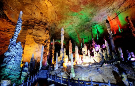 黃龍洞景區(qū)由“世界溶洞奇觀”黃龍洞、最美的田園風(fēng)光生態(tài)廣場(chǎng)及新民族音樂秀《煙雨張家界》三個(gè)部分構(gòu)成。