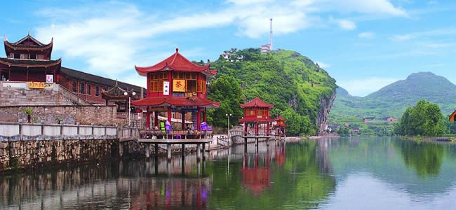 邵陽市歷史上的“寶慶十二景”,多點綴于資江兩岸,環(huán)布市區(qū)。由雙清公園、水府廟小游園和東塔公園連綴而成的城區(qū)風景區(qū),兼有人工之美和自然之秀。水府廟前,雙江匯流;資江南北,兩塔并峙;江流蜿轉(zhuǎn),四橋飛虹;近水遙山,綠意蔥籠。市郊附近的溶洞亦為奇觀。境內(nèi)辟有新寧崀山、城步南山、武岡云山、新邵白水洞等風景區(qū),60多個旅游景點。全國道教七十二福地之一的武岡云山歷來香火鼎盛。有兩華聳翠、一瀑飛濤、仙橋橫漢、杏塢藏春等10景,野生動植物品種繁多,被辟為國家森林公園。城步南山象一塊碧綠的翡翠鑲嵌在湘西南邊陲,芳草如茵,牛羊成群,既具北國草原的雄渾,又不失江南草山的靈秀,為回歸綠色旅游的最佳生態(tài)環(huán)境。新寧崀山系典型的丹霞地貌景觀,集奇峰、幽谷、碧水、丹崖于一體,方圓達100平方公里,紫霞洞曲徑通幽,駱駝峰高聳入云,牛鼻寨的“天下第一巷”鬼斧神工,堪稱“亞洲第一”的仙人橋渾然天成。登八角寨遠眺,群峰幽谷,丹崖秀水,盡收眼底;泛舟扶夷水上,澄江如練蜿蜒于百里畫廊。全國著名經(jīng)濟學(xué)家厲以寧至此油然感慨:“一線天梯驚煞人,幽谷深處凈無塵;新寧別有奇峰在,不讓武陵獨占春!鄙坳柹酱ǖ乩,秀麗天成。崀山景區(qū),是天下風光之勝;南山牧場,為江南草山明珠;黃桑森林王國,云山佛門圣地,綏寧神奇綠洲,龍山地下藏金。銀杉國寶,鐵杉群落,自然景觀,民族風情。泛舟資江三峽,尋幽舜皇秀色,無不風光奇絕,引人入勝。邵陽更是一方人文薈萃之區(qū)!耙鹿谕趸,耕鑿古風同”。邵陽開化甚早,民風淳厚,智慧勤勞,尚武崇文,文明綿遠,代有才人。唐代胡曾,工詩味史;車氏一家,才俊滿門;清代魏源,倡師夷制夷之說;民元蔡鍔,有護國倒袁之勛。比及民國,志士接踵。御外侮而謀解放,袁國平沙場獻身;求真理而競自由,尹如圭血寫春秋。他們都是邵陽人杰,千古風流,民族精英。