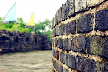 2、月城城墻壁上有八個大炮洞,火炮隱置洞內,可避免敵炮的轟擊,士兵也比較安全。