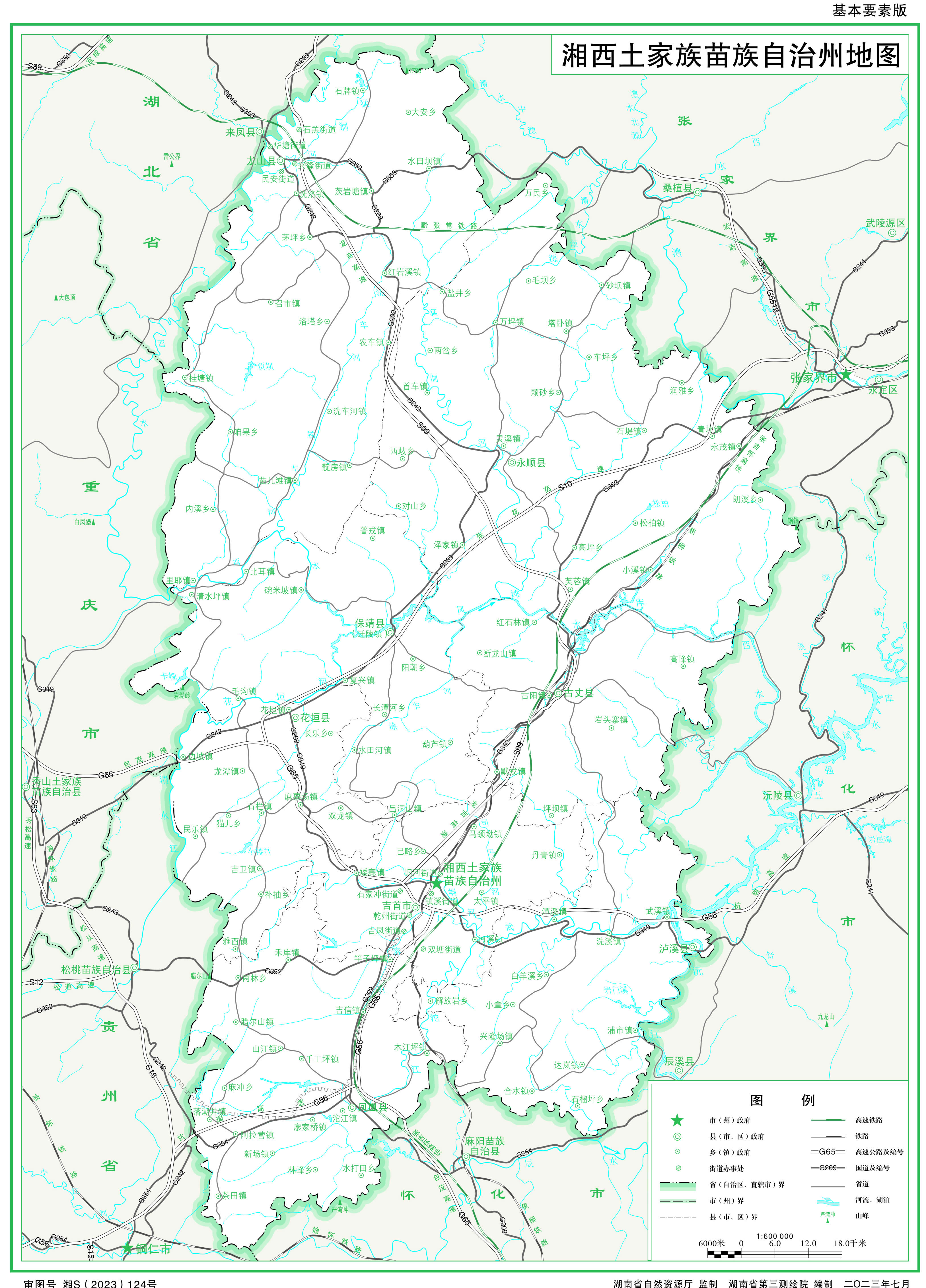 湘西土家族苗族自治州轄1個縣級市、7個縣: