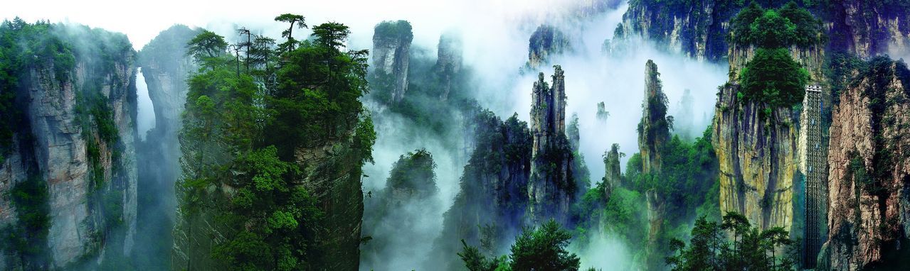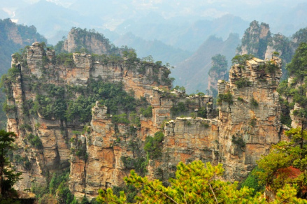 袁家界面積約1200公頃,平均海拔1074米,它東鄰金鞭溪、遠(yuǎn)眺鷂子寨;南望黃石寨,連接天波府;西通天子山;北距索溪峪。它位于張家界國家森林公園北部,是鑲嵌在武陵源核心景區(qū)的一顆明珠。袁家界位于杉刀溝北麓,是以石英巖為主構(gòu)成的一座巨大而較平緩的山岳。是張家界公園又一處風(fēng)景集中地。自金鞭溪紫草潭左入杉刀溝可上袁家界;順袁家界臺地邊沿,繞荒徑小道亦可下至金鞭溪千里相會處;亦可從袁家界去天子山、楊家寨。