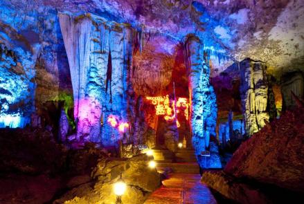 黃龍洞位于湖南省張家界市核心景區(qū)武陵源風(fēng)景名勝區(qū)內(nèi),是世界自然遺產(chǎn)、世界地質(zhì)公園武陵源的有機組成部分,屬典型的喀斯特巖溶地貌,以其龐大的立體結(jié)構(gòu)洞穴空間、豐富的溶洞景觀、水陸兼?zhèn)涞挠斡[觀光線路獨步天下,被列為國際旅游洞穴會員、全國35個王牌景點之一、中國首批AAAA級旅游景區(qū)、中國旅游首批知名品牌、中國馳名商標(biāo)、湖南省最佳旅游景區(qū)、張家界旅游精品線之一,享有“世界溶洞奇觀”、“世界溶洞全能冠軍”之美譽,2005年被評選為“中國最美旅游溶洞”。