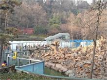 貓科館保留了原址的山體,將原址地形巧妙運用,在空間被利用化最高的同時,把自然的陡坡、原生態(tài)的植被都最大程度的給了動物為了把它們需要的環(huán)境盡可能的還原,在充分利用原有地形的基礎(chǔ)上組合山石、設(shè)計模擬巖洞,種植大量華北、華南地區(qū)特有的針葉林植物用作隱蔽,避免動物受到游客的視線壓力。同時用原木搭建不同高度、難度的棲架滿足動物攀爬、玩耍、轉(zhuǎn)移等不同需要,增加水池、生態(tài)木屑池,制造溪水、濕地等景觀,為動物提供盡可能多的選擇和探索的區(qū)域。人造山洞內(nèi)還設(shè)置了加溫系統(tǒng)。