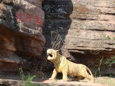 位于虎山東麓的五蓮池澗谷口。巨大的赤色崖壁上,有一天然凹洞,俗稱老虎窩。據(jù)說(shuō)40年前虎窩內(nèi)可坐4人打牌,后來(lái)因有人在窩上方開(kāi)山炸石才破壞了景點(diǎn)的原貌,如今仍見(jiàn)一淺洞。